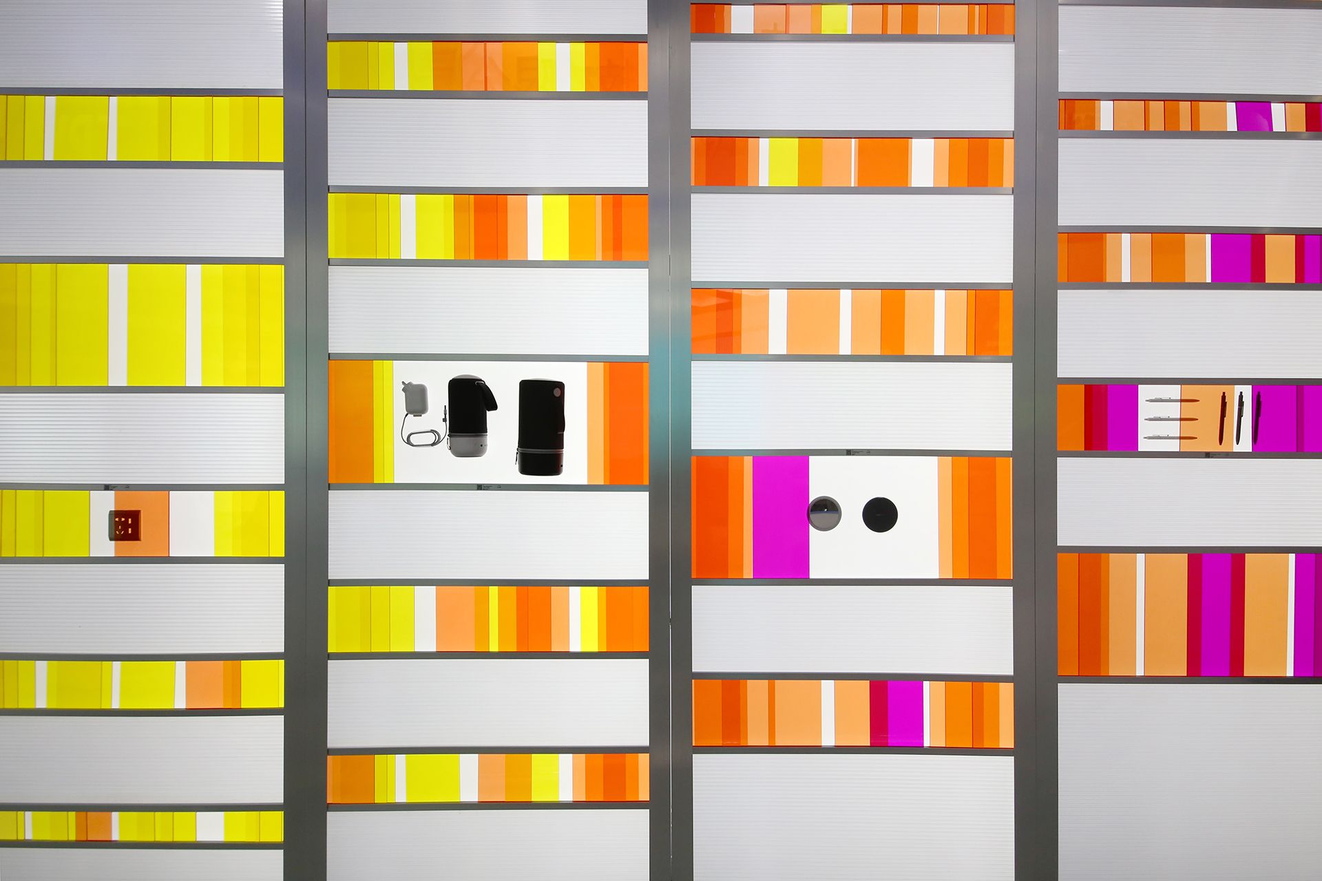 随着消费者越来越关注产品的美学。CMF(颜色、 材料和表面处理)在工业领域变得越来越重要。为了探索和激发CMF在数字时代应用于产品设计的创意灵感,中国前瞻创新顾可公司YANGDESIGN与材料制造商科思创Coverstro合作。以科思创LOGO中的彩虹渐交色为色彩灵感在CHINAPAS打造了吸睛的CMF艺术装置。 彩虹万通板CMF通过灵感墙设计灵感的来源于对科思创万通板和色板独特性能的探索,剔透的PC材料色板富有多姿的色彩,在相互移动重叠的过程中,更产生了丰富的色彩组合。YANG DESIGN将背景墙设计成为可以復使用的展示系统,并镶嵌了使用科思创材料设计的不同产品。靓丽的色彩组合,使得CMF灵感墙成为现场观众争相驻足的自拍点。
