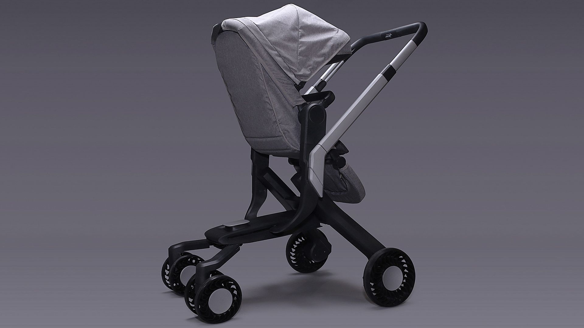 YANG DESIGN与杭州鲸算罗伯特科技有限公司合作,通过对用户深度的洞察和研究,人机交互过程的观察和分析,针对用户的期望和需求设计了一款具有自动折叠、自动跟随功能的智能婴童推车。